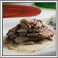 Milhojas de lengua de morucha escabechada, con boletus edulis laminados, en su aceite de oliva con trufa blanca