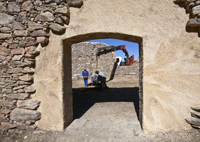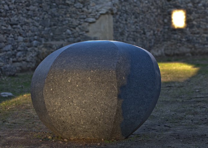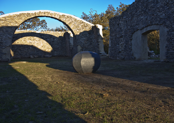 Y abrazada por ese espacio, una piedra en bruto, arrancada a la tierra, que se deja pulir y transformar.