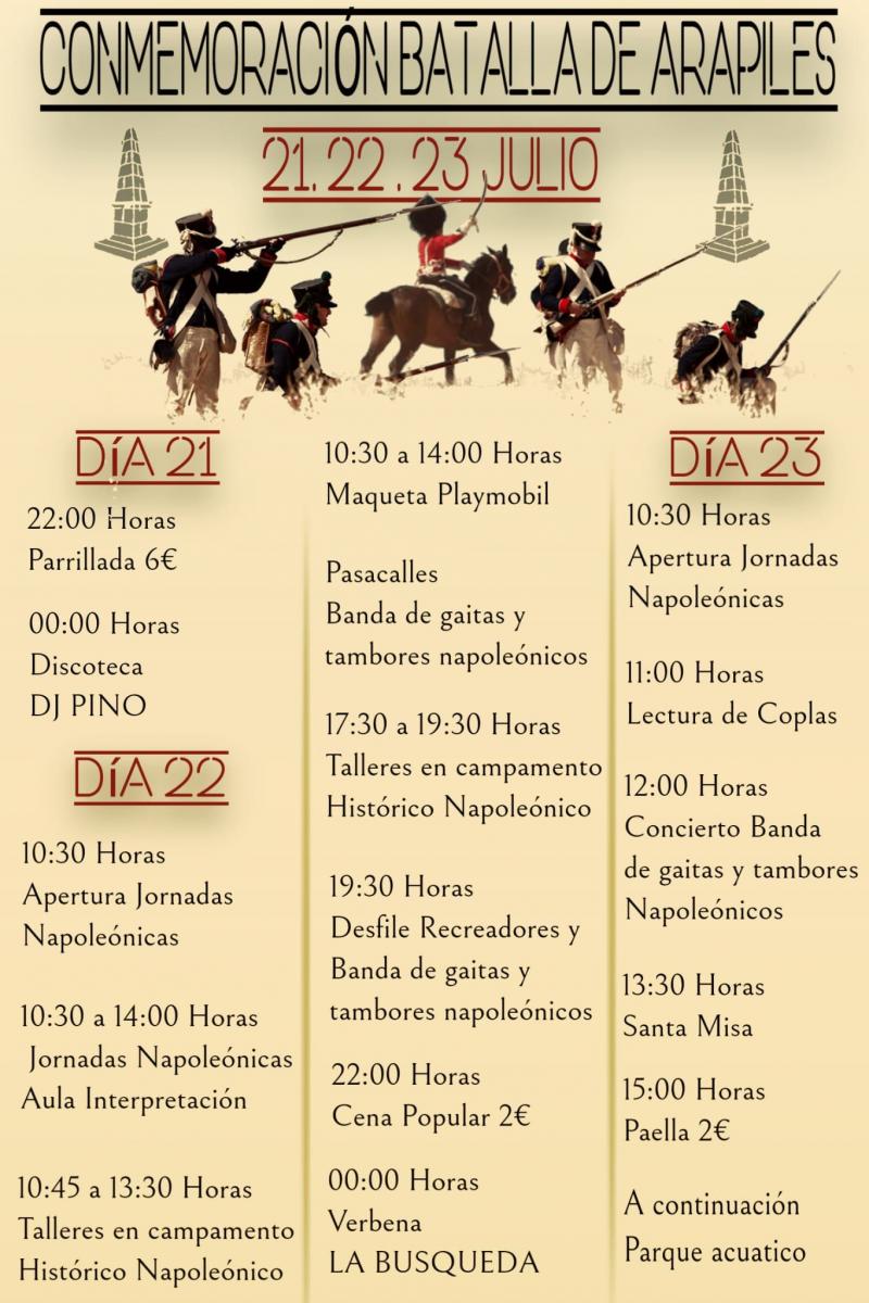 Los días 21, 22 y 23 de julio se ofrece un programa especial en conmemoración de la batalla con la instalación de un campamento que recreará la vida cotidiana de los soldados y de las gentes de la época, desfiles, pasacalles con bandas y tambores napoleónicos...